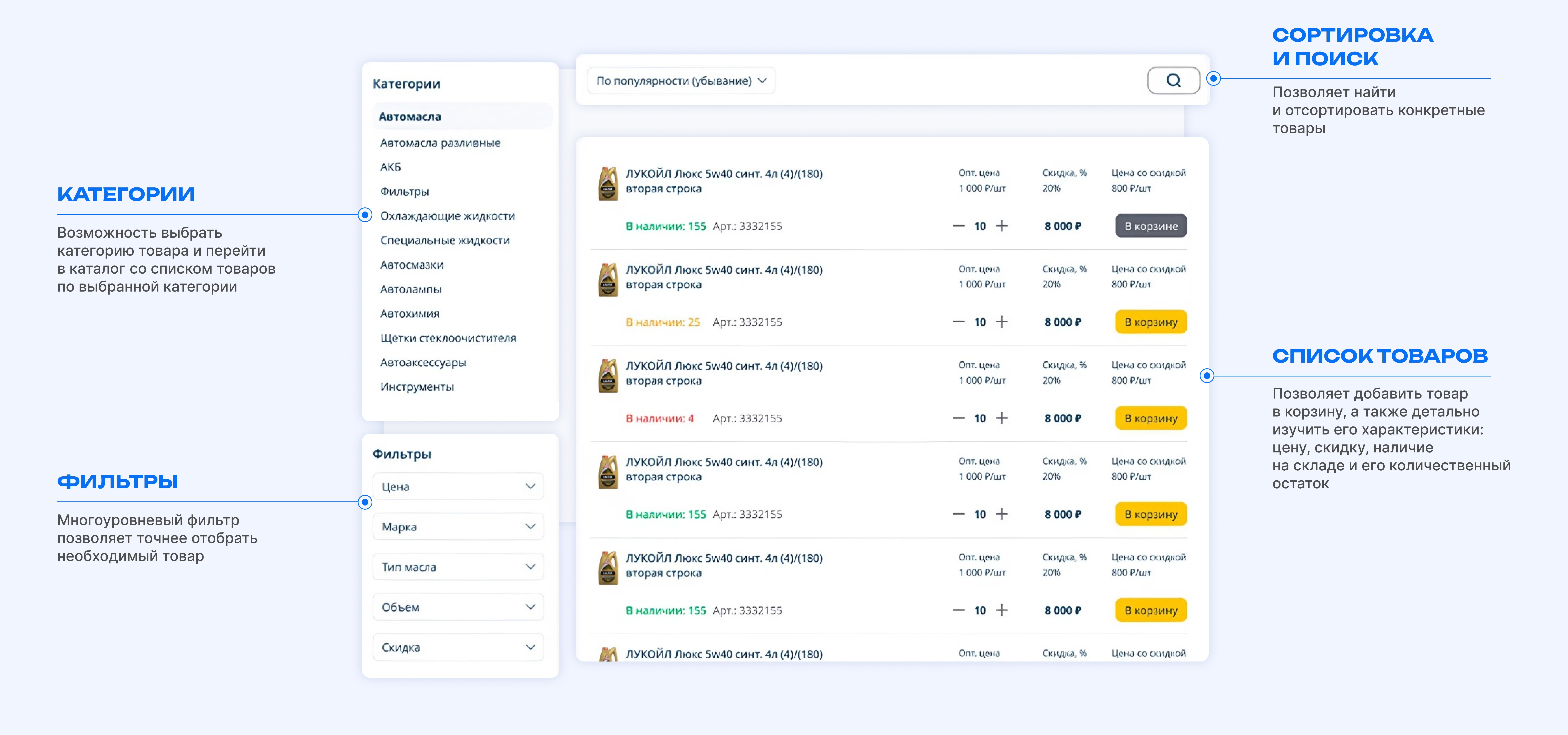 Дилеры видит свою скидку и цену товара в карточке.
